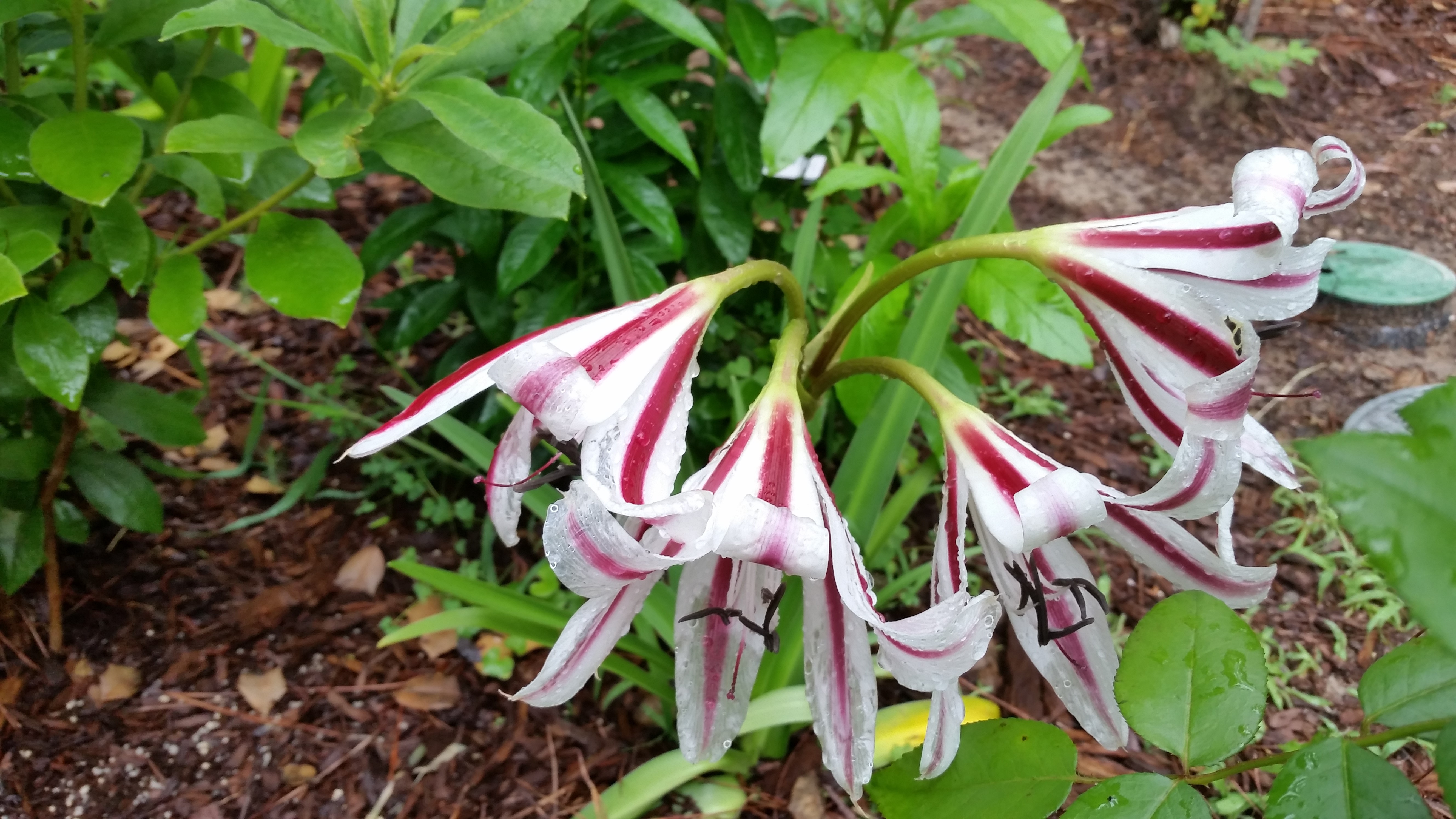 Crinums are “kin” to the Amaryllis bulb family. Amaryllis  bloom in April/May and then Crinums bloom from May on into September.